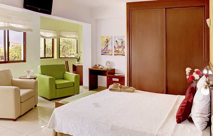 Estas habitaciones tienen una extensión de aproximadamente 29m2 y cuentan con un dormitorio independiente con cama doble. El baño está compuesto por tres piezas. Las habitaciones están equipadas con caja fuerte, sofá, hervidor eléctrico y servicio de café-té. Además, estas habitaciones cuentan con balcón con vista frontal a Porto Grande.
